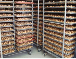 - 此時(shí)經(jīng)過(guò)前期的階段升溫,可將烘房溫度設(shè)置為70℃。持續(xù)運(yùn)行2小時(shí)左右。此時(shí)打開門,觀察物料的外觀、干燥程度。待物料有8-9成干時(shí),即可關(guān)閉加熱主機(jī),烘房溫度回溫至室溫時(shí)即可將烘房?jī)?nèi)的推車取出,將干制后的成品取出。